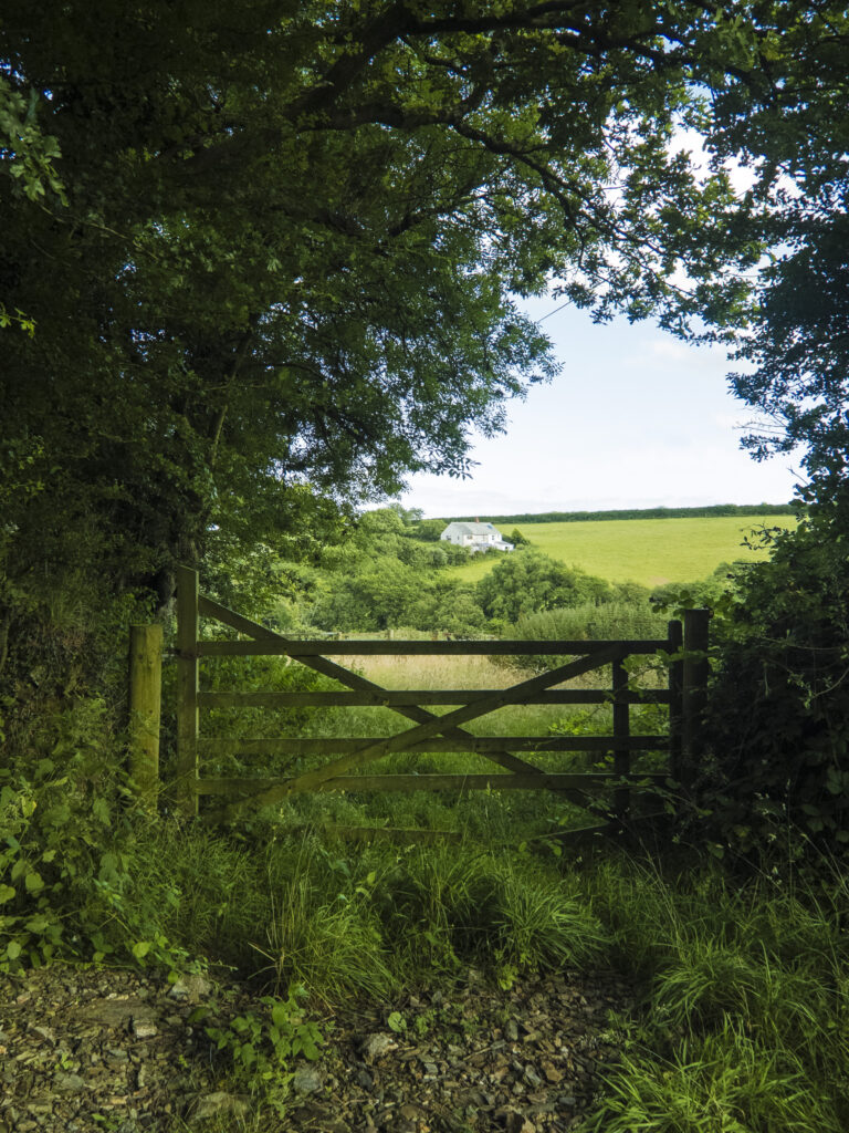 The Cornish GateAn old farm gate rests beneath a tangle of wind-shaped trees, its timber weathered by salty air and seasons. Beyond it, a whitewashed farmhouse sits against the gentle rise of the Cornish land, steadfast, solitary, and sun-touched. The air feels briny and still, as though the sea is just out of sight but very much present. It is a scene of threshold and belonging. A moment suspended between the wild hedgerows and the promise of hearth and home beyond.Stock Photographer